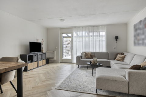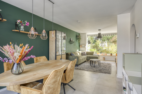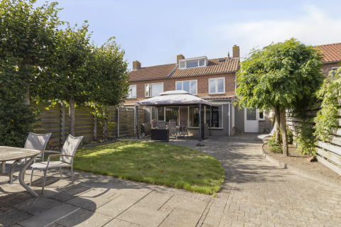 In de achtergevel bevindt zich een schuifpui die toegang geeft tot het overdekte terras. Zet de schuifpui open en maak van de tuin een verlengstuk van de woonkamer, perfect voor zomerse etentjes of om gewoon te genieten van het buitenleven. Deze ruimte biedt jou de kans om jouw persoonlijke stijl en sfeer te creëren, zowel binnen als buiten.